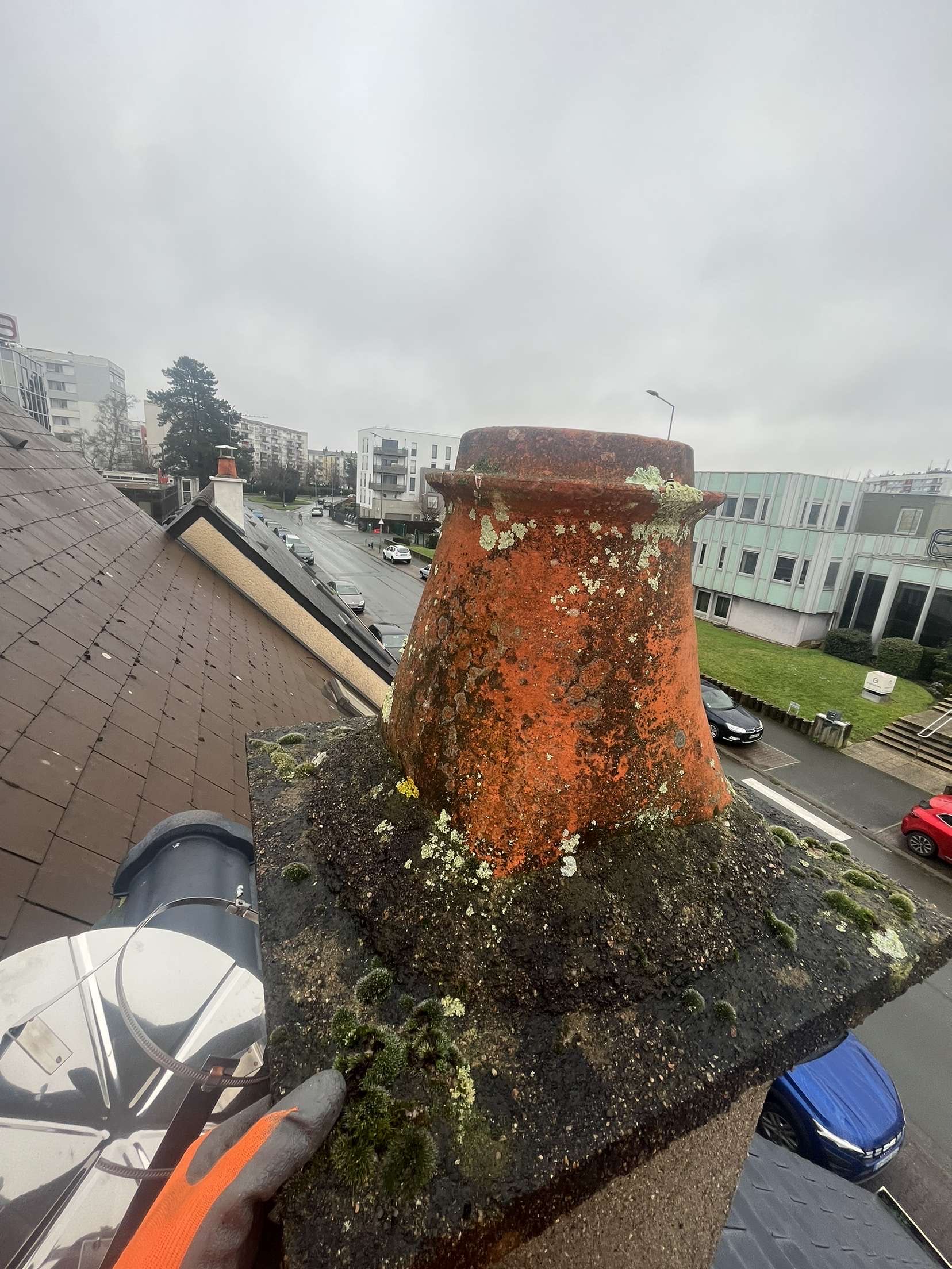 Nous avons procédé à la réparation d’une infiltration sur une toiture située sur la commune d’Angers. Les travaux ont inclus la mise en place d’un chapeau de pluie afin de prévenir toute nouvelle infiltration et d’assurer une protection durable de la structure.